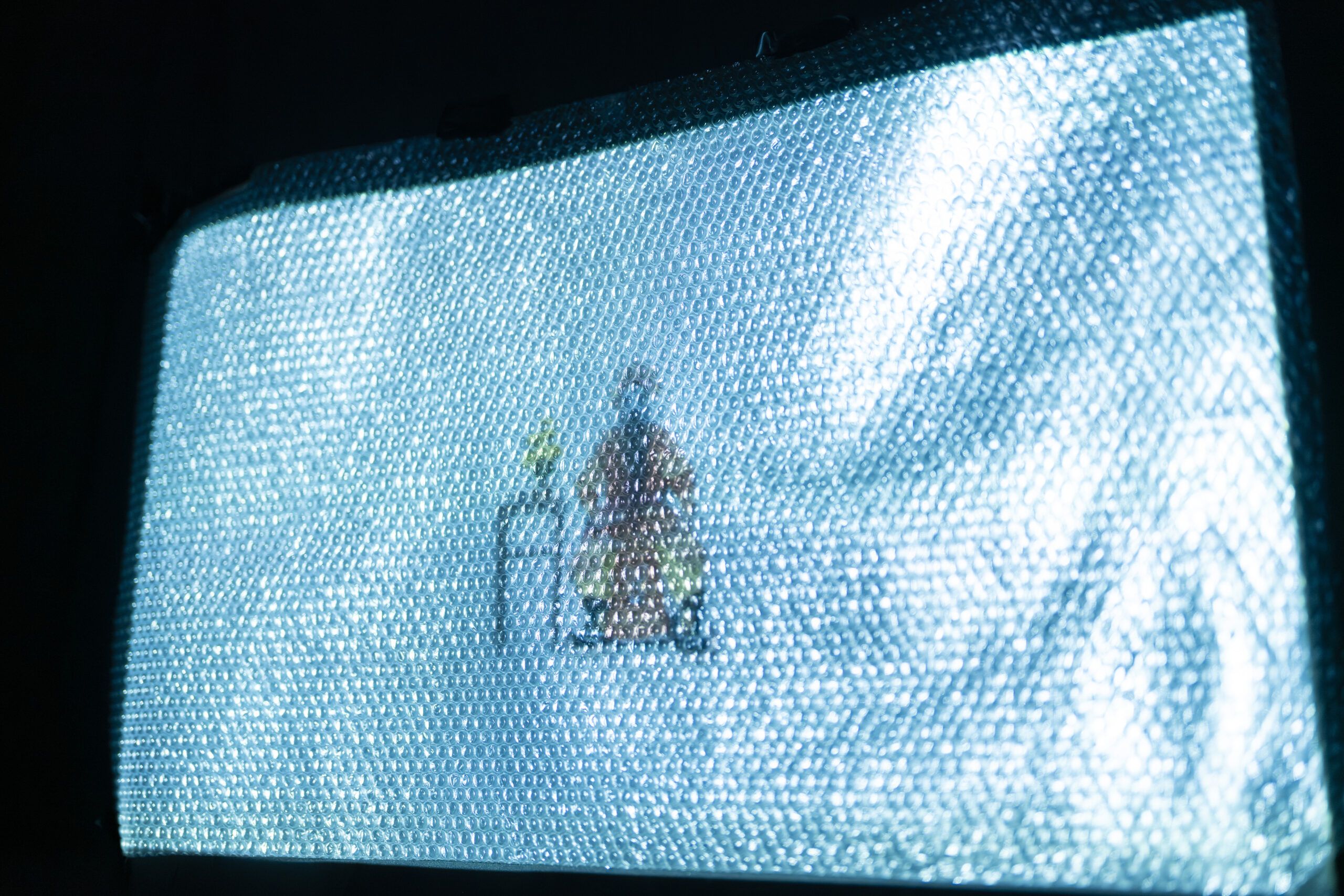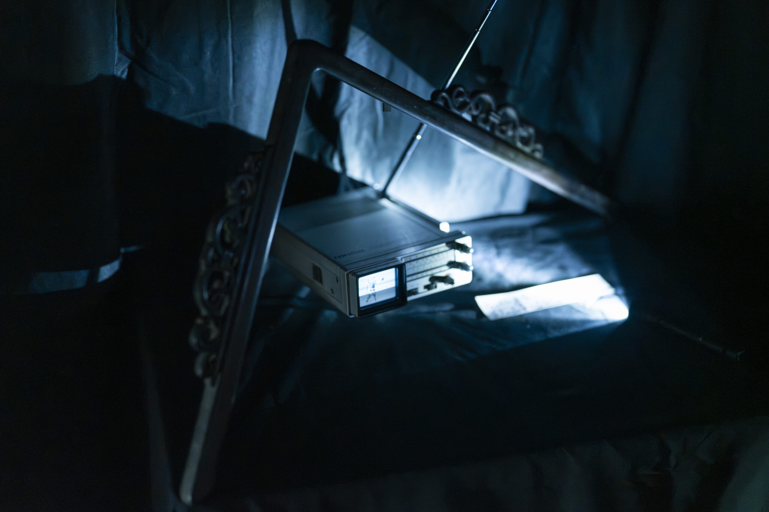古風なイメージが、儀式的な色彩の豪華な美しさに身を潜めている空間。そこは、時間の隔たりや断絶がもたらす奇妙さに包まれ、美しさと悲しみ、華やかさと孤独が共存しています。この作品は、観客を「中に入り」、「カセットテープをかけ」、「鏡をのぞき」、「トゥオン(ベトナムの伝統芸術)を観る」という旅へと誘います。
